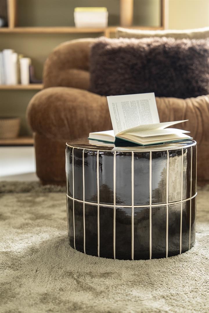Deze bijzettafel trekt meteen de aandacht door het unieke tegelpatroon en de warme, glanzende finish. Hij biedt een perfecte mix van praktische bruikbaarheid en modern design, waardoor hij op verschillende manieren ingezet kan worden. Zet hem naast de bank als functionele tafel of gebruik hem als decoratief voetstuk voor je favoriete woonaccessoires.