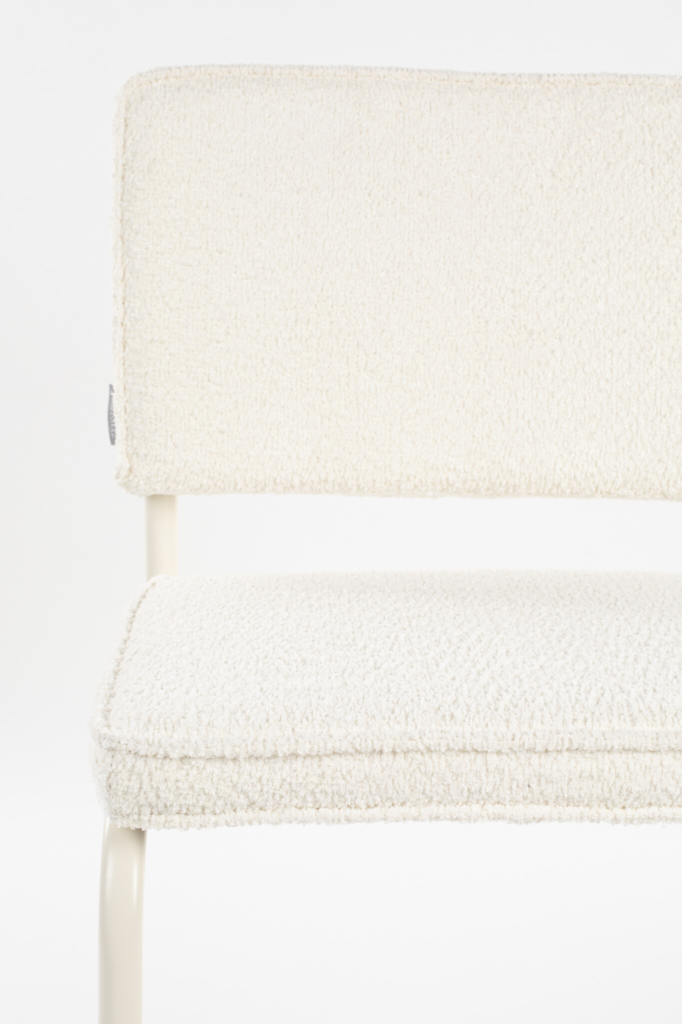De Ridge Rib eetkamerstoel is een echte Zuiver-klassieker. Met zijn elegante vormen, comfortabele zitting en gestoffeerde rugleuning biedt deze stoel niet alleen optimaal zitcomfort, maar ook een stijlvolle uitstraling. Deze variant is voorzien van een geknikt buisframe waardoor je de stoelen kunt stapelen. De zitting en rugleuning zijn bekleed met een zachte bouclé, wat zorgt voor een speels en eigentijds effect. Het kenmerkende buisframe met zwevend ontwerp (zonder achterpoten) geeft de stoel zijn luchtige, sierlijke karakter.