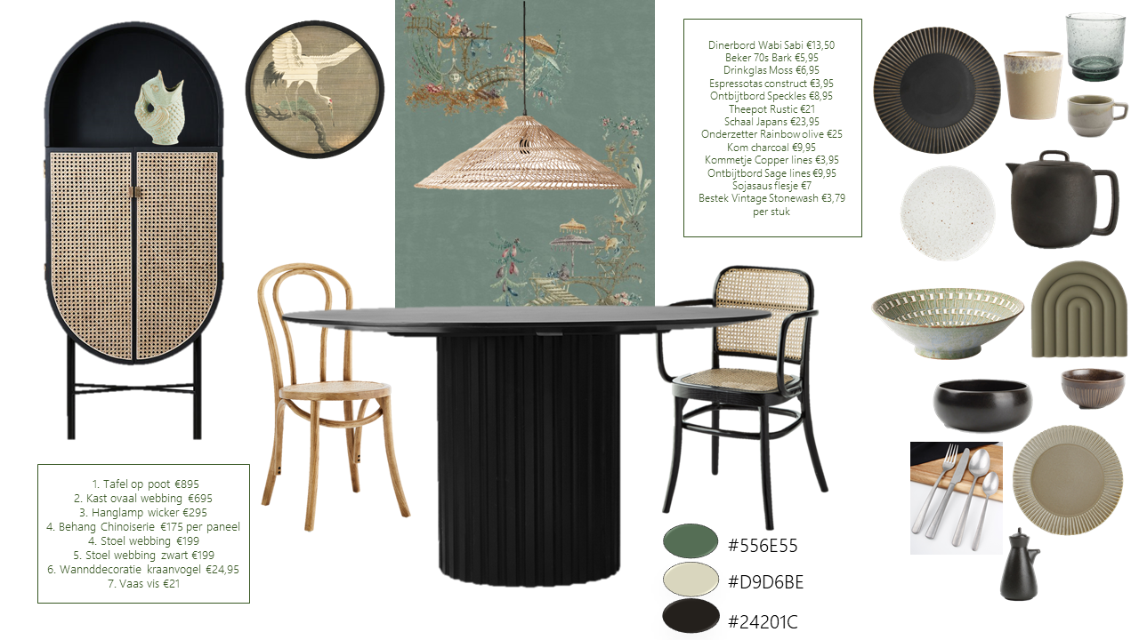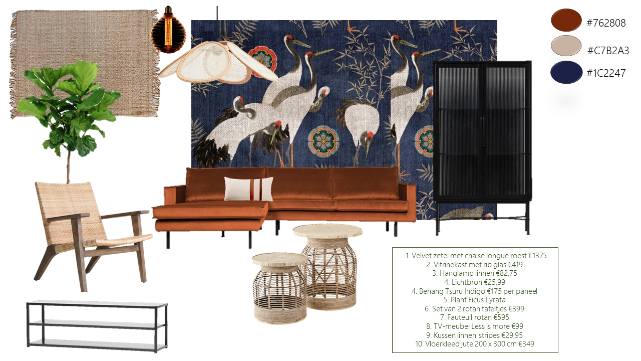 - Moodboard volledig op maat gemaakt. Hierin worden kleuradvies, meubels, sfeerverlichting en accessoires voorgesteld.