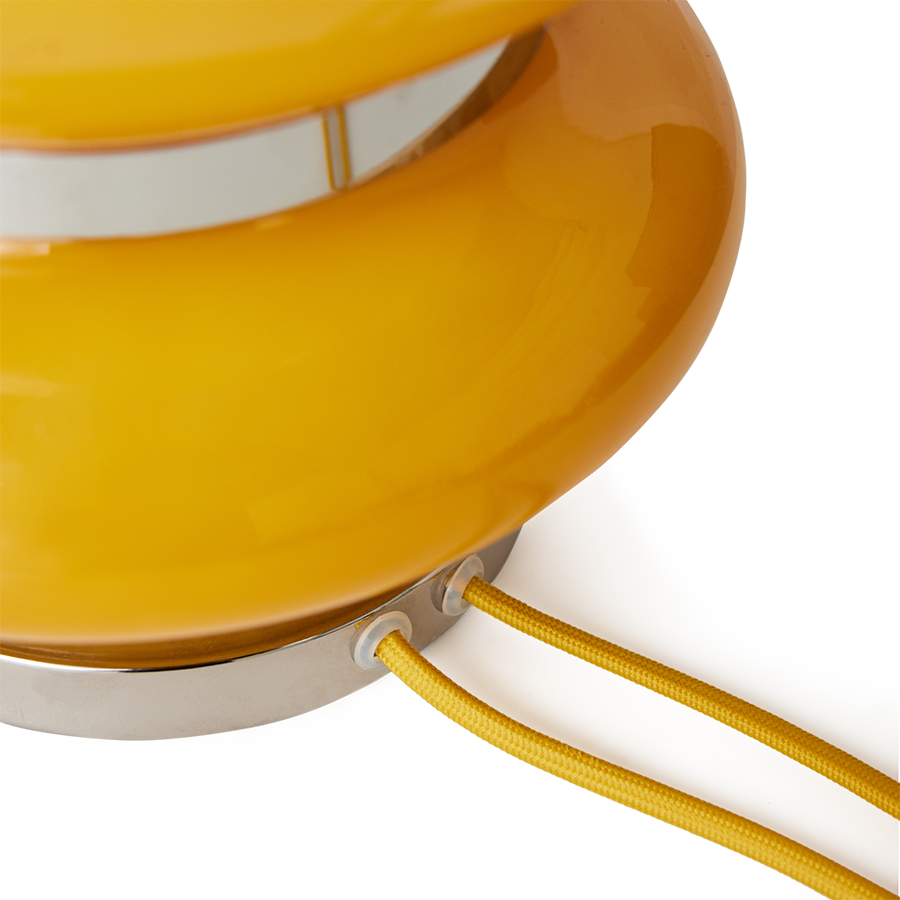 Laat de charme en warmte van de space age het middelpunt worden van je woonkamer, studeerkamer of slaapkamer. De lampvoet Bubble is een eerbetoon aan de gedurfde esthetiek van de jaren ’60 en ’70, volledig vernieuwd voor het moderne interieur. De gepolijste chroomaccenten vormen een opvallend contrast met het gladde, gekleurde glas, waardoor een look ontstaat die zowel retro als eigentijds is.
