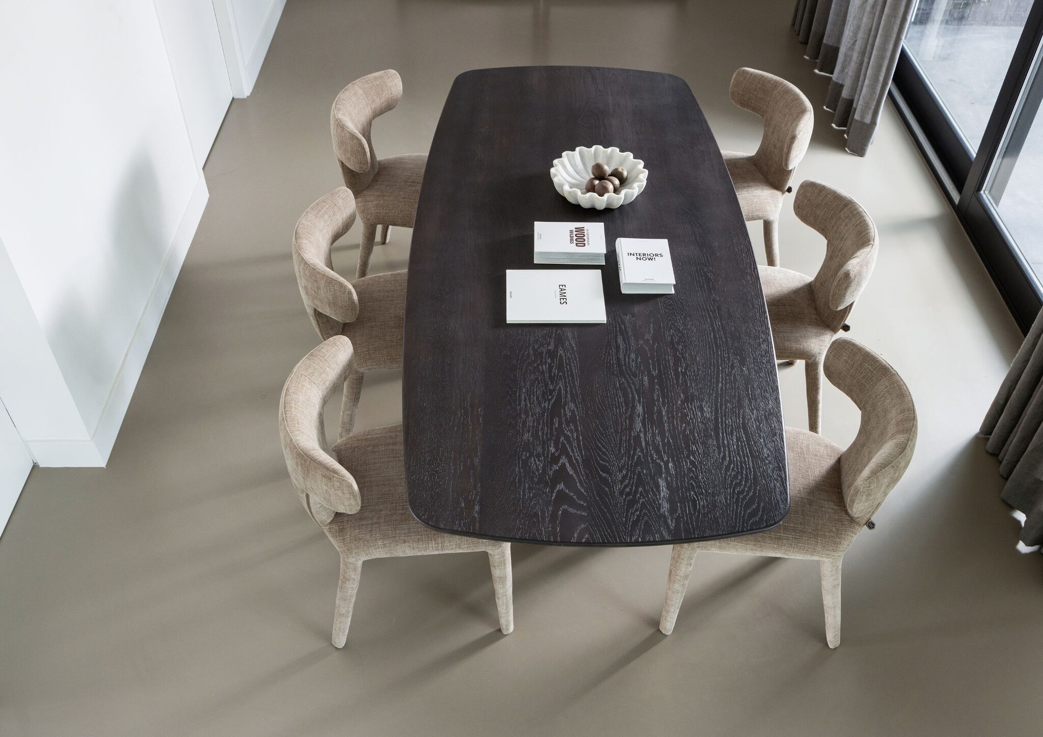 De tafelbladen zijn verkrijgbaar in zes verschillende kleuren: Transparant, Dakargrau, Pebble Grey, Cashmere Brown, Mystic Brown en Blacknight. Het onbehandelde eikenhout heeft een natuurlijke lichtbruine kleur en een duidelijk zichtbare nerftekening. De tafelbladen worden afgewerkt met een beits op waterbasis. Het eikenhout in onze collecties is 100% FSC®-gecertificeerd.