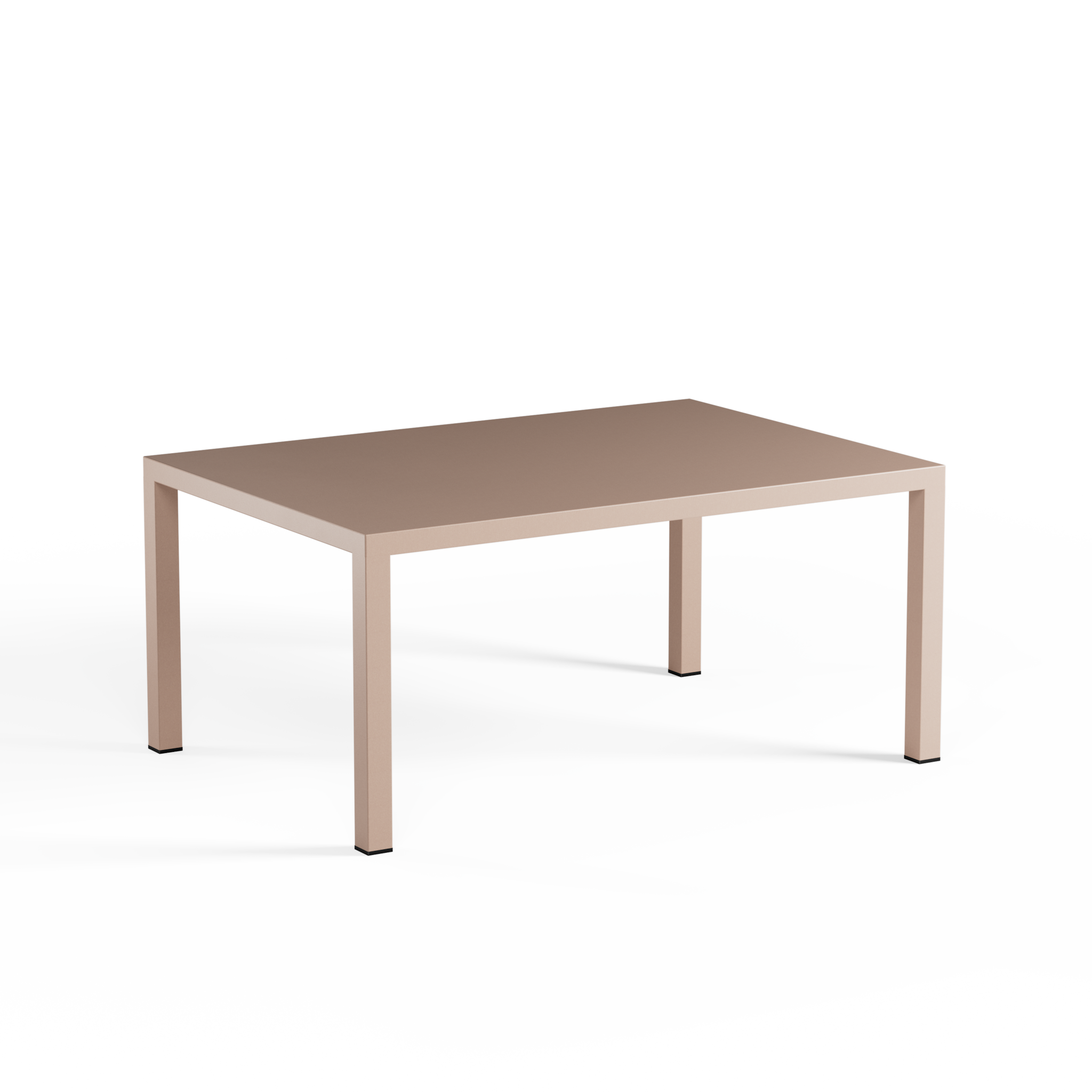 Het royale tafelblad van 100 × 70 cm is vervaardigd uit warmverzinkt staalplaat en voorzien van een zelfnivellerende structuur, waardoor het blad zich subtiel aanpast en steeds stabiel ligt. In combinatie met het slanke frame ontstaat een harmonieuze balans tussen stevigheid en visuele lichtheid.