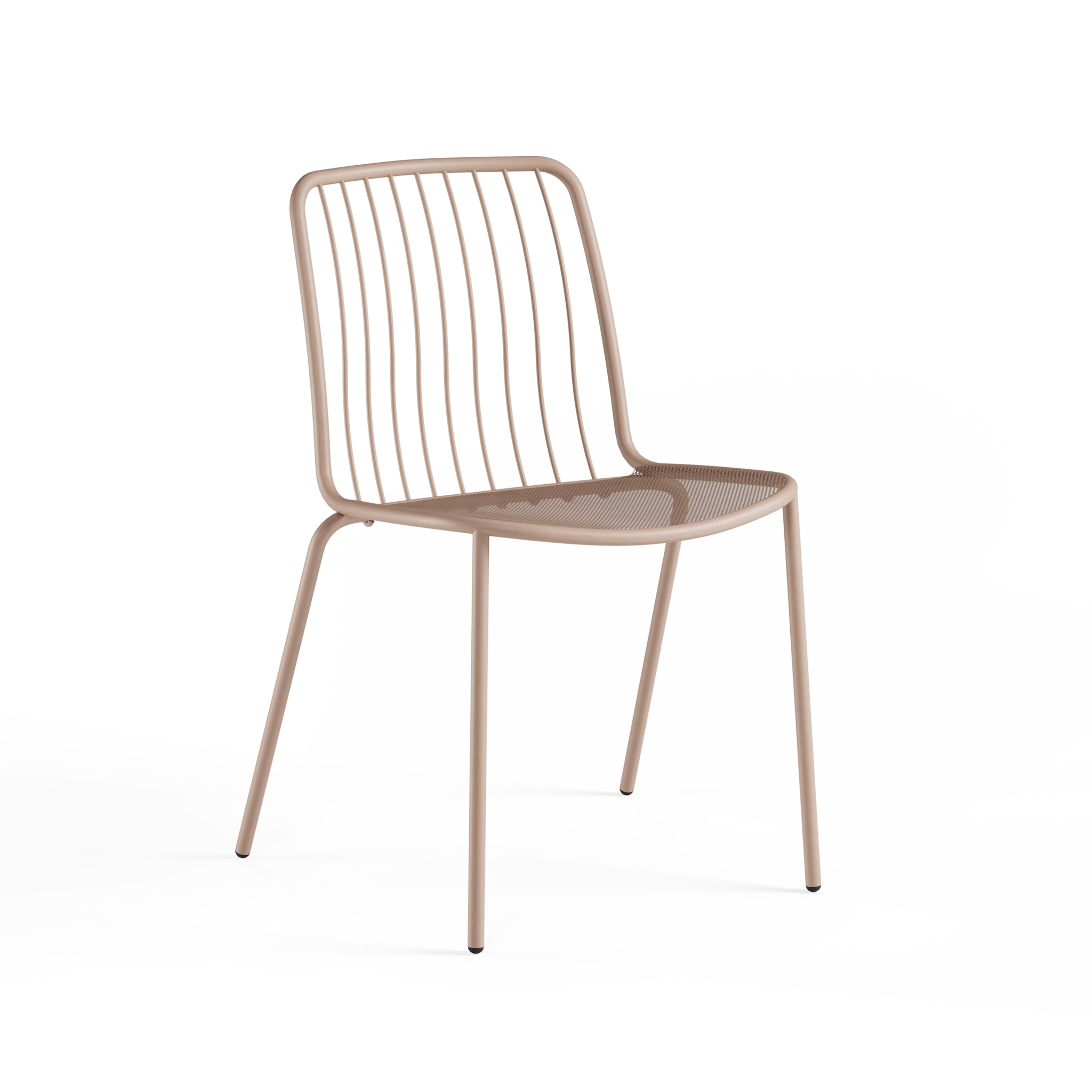 Het zitvlak van stalen mesh zorgt voor comfort en ademend vermogen, terwijl de rugleuning van metalen staven een speels en luchtig effect creëert. Dankzij de combinatie van gebogen staven en stalen mesh is de stoel bijzonder stevig en geschikt voor intensief gebruik. Verkrijgbaar in 19 kleuren, waardoor hij eenvoudig te combineren is met moderne, industriële of eigentijdse stijlen.