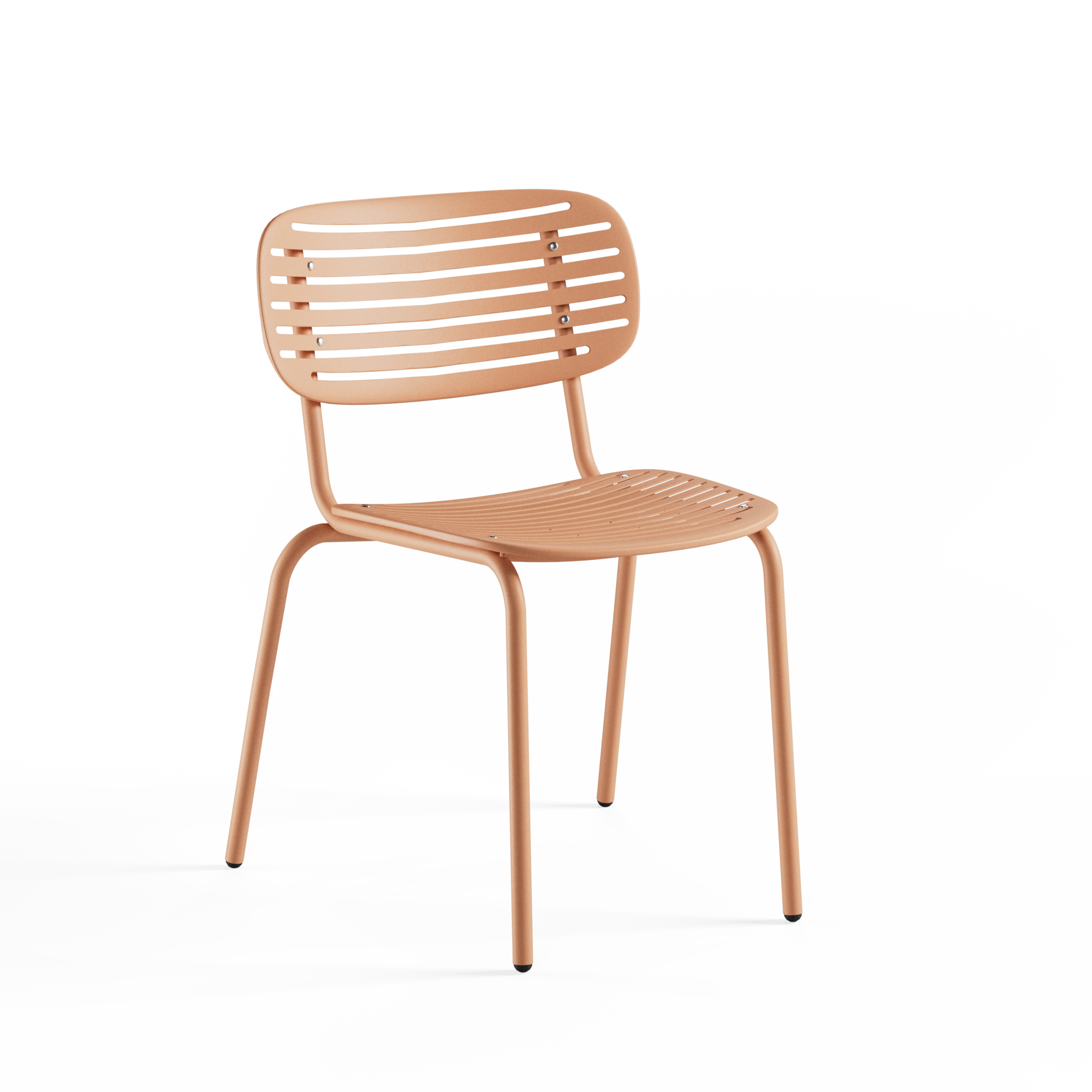 De zitting en rugleuning zijn vervaardigd uit gestanst en warm‑gegalvaniseerd staal, waardoor de stoel uitstekend bestand is tegen weer en wind. Het subtiele grafische patroon in de rugleuning geeft de stoel een dynamische, verfijnde look en zorgt tegelijk voor een lichte, open uitstraling. De rugleuning is stevig bevestigd met roestvrijstalen rivetten, wat extra duurzaamheid en bescherming tegen corrosie garandeert.